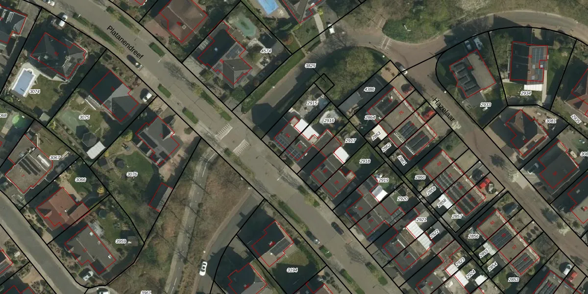 Gebruik de zoekbalk of klik op een perceel voor informatie over de adressen binnen dit perceel.