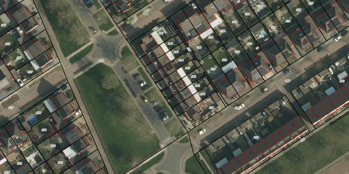 Het perceel waarop Platostraat 39 staat heeft een oppervlakte van 155 m². Dit is een middelgroot perceel. De perceeloppervlakte wordt geregistreerd door het Kadaster. Gedetailleerde informatie over de maten van dit perceel kunt u vinden in het rapport Kadastrale kaart met maatvoering van Platostraat 39.