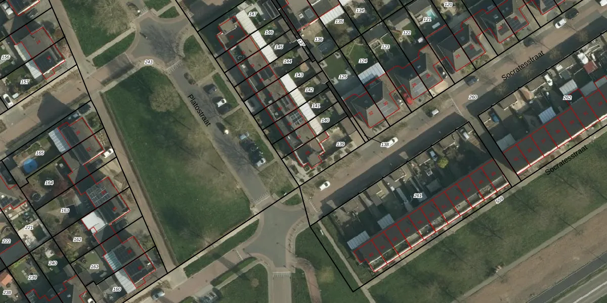 Het perceel waarop Platostraat 45 staat heeft een oppervlakte van 278 m². Dit is een middelgroot perceel. De perceeloppervlakte wordt geregistreerd door het Kadaster. Gedetailleerde informatie over de maten van dit perceel kunt u vinden in het rapport Kadastrale kaart met maatvoering van Platostraat 45.