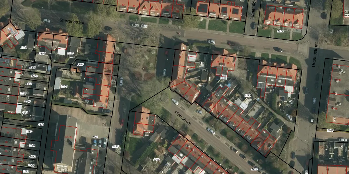 Het perceel waarop Pleinstraat 20 staat heeft een oppervlakte van 2845 m². Dit is een zeer groot perceel. De perceeloppervlakte wordt geregistreerd door het Kadaster. Gedetailleerde informatie over de maten van dit perceel kunt u vinden in het rapport Kadastrale kaart met maatvoering van Pleinstraat 20.