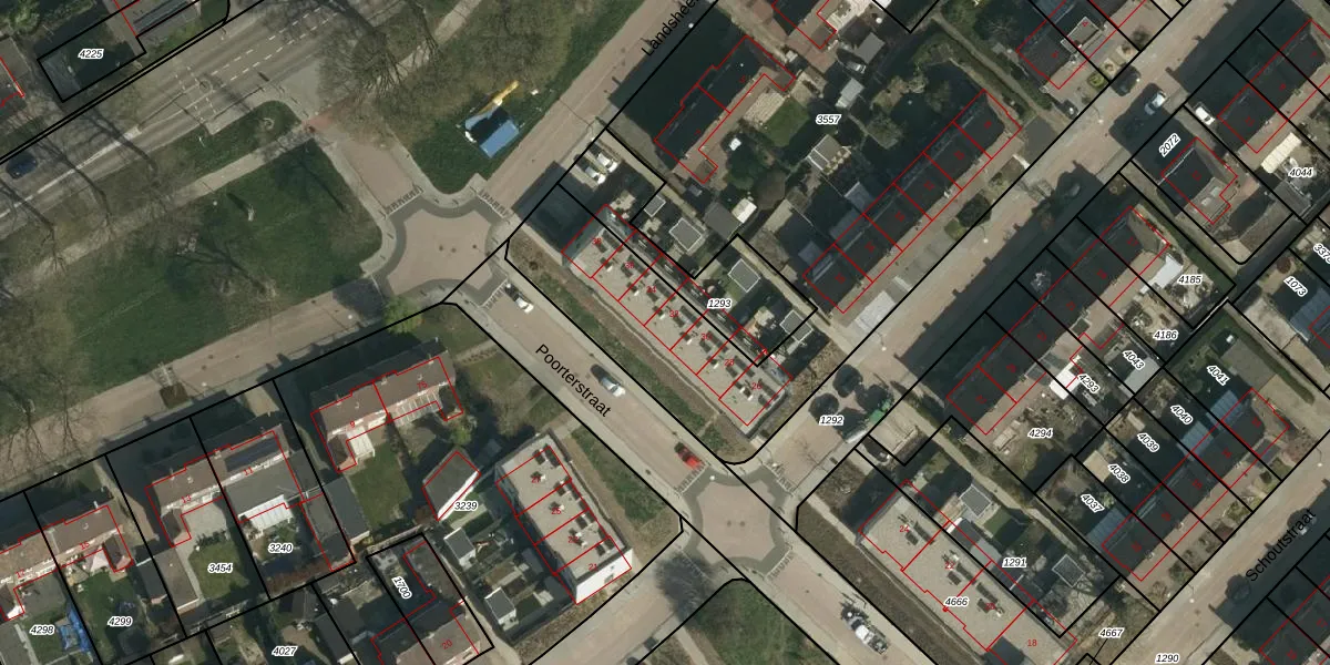 Het perceel waarop Poorterstraat 32 staat heeft een oppervlakte van 3377 m². Dit is een zeer groot perceel. De perceeloppervlakte wordt geregistreerd door het Kadaster. Gedetailleerde informatie over de maten van dit perceel kunt u vinden in het rapport Kadastrale kaart met maatvoering van Poorterstraat 32.