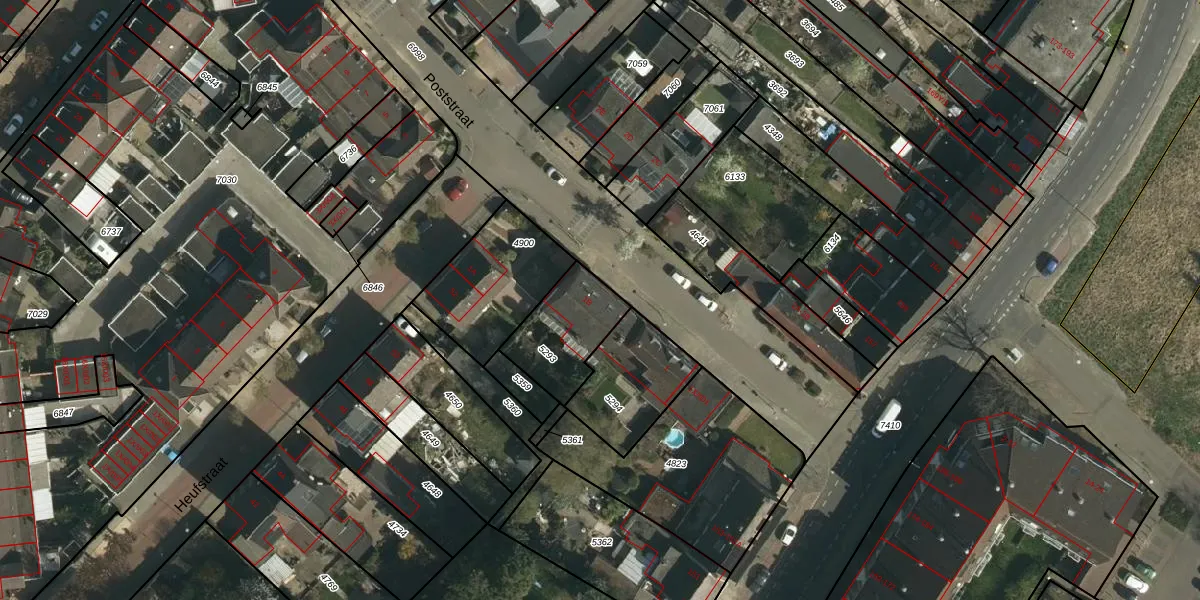 Het perceel waarop Poststraat 1-B staat heeft een oppervlakte van 254 m². Dit is een middelgroot perceel. De perceeloppervlakte wordt geregistreerd door het Kadaster. Gedetailleerde informatie over de maten van dit perceel kunt u vinden in het rapport Kadastrale kaart met maatvoering van Poststraat 1-B.
