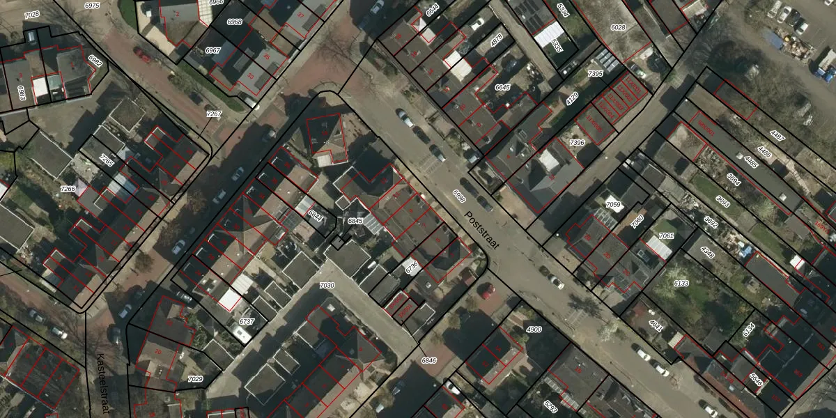 Het perceel waarop Poststraat 9 staat heeft een oppervlakte van 4601 m². Dit is een zeer groot perceel. De perceeloppervlakte wordt geregistreerd door het Kadaster. Gedetailleerde informatie over de maten van dit perceel kunt u vinden in het rapport Kadastrale kaart met maatvoering van Poststraat 9.