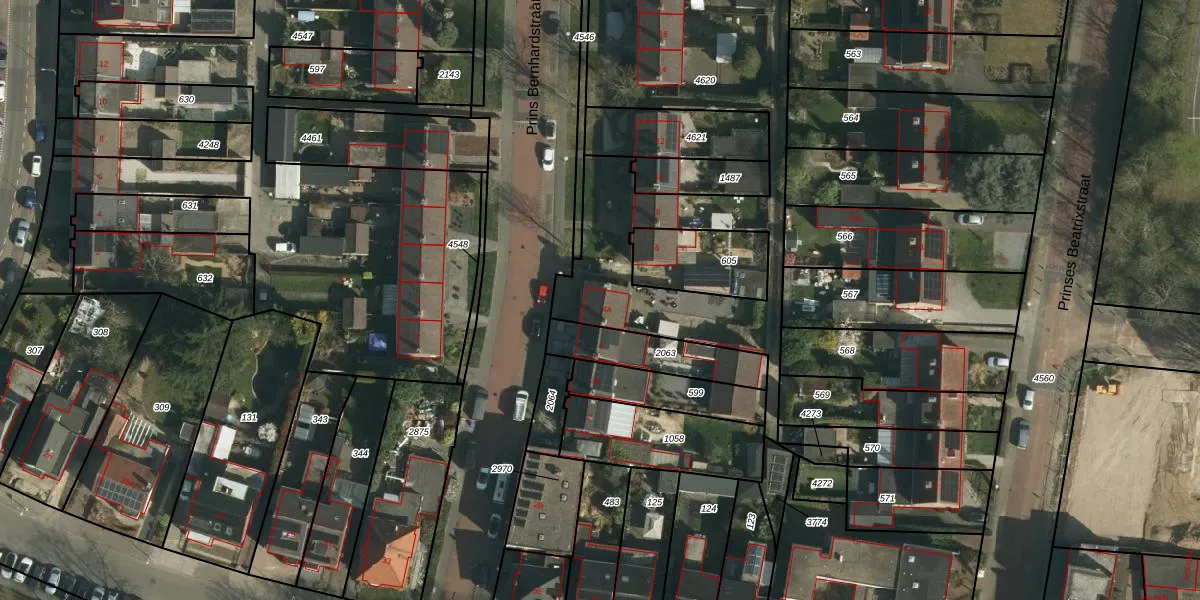 Het perceel waarop Prins Bernhardstraat 4-A staat heeft een oppervlakte van 2058 m². Dit is een zeer groot perceel. De perceeloppervlakte wordt geregistreerd door het Kadaster. Gedetailleerde informatie over de maten van dit perceel kunt u vinden in het rapport Kadastrale kaart met maatvoering van Prins Bernhardstraat 4-A.