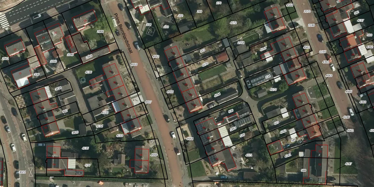 Het perceel waarop Prins Bernhardstraat 64 staat heeft een oppervlakte van 1750 m². Dit is een zeer groot perceel. De perceeloppervlakte wordt geregistreerd door het Kadaster. Gedetailleerde informatie over de maten van dit perceel kunt u vinden in het rapport Kadastrale kaart met maatvoering van Prins Bernhardstraat 64.