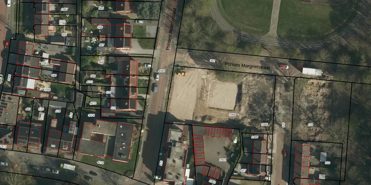 Het perceel waarop Prinses Beatrixstraat 26 staat heeft een oppervlakte van 1884 m². Dit is een zeer groot perceel. De perceeloppervlakte wordt geregistreerd door het Kadaster. Gedetailleerde informatie over de maten van dit perceel kunt u vinden in het rapport Kadastrale kaart met maatvoering van Prinses Beatrixstraat 26.