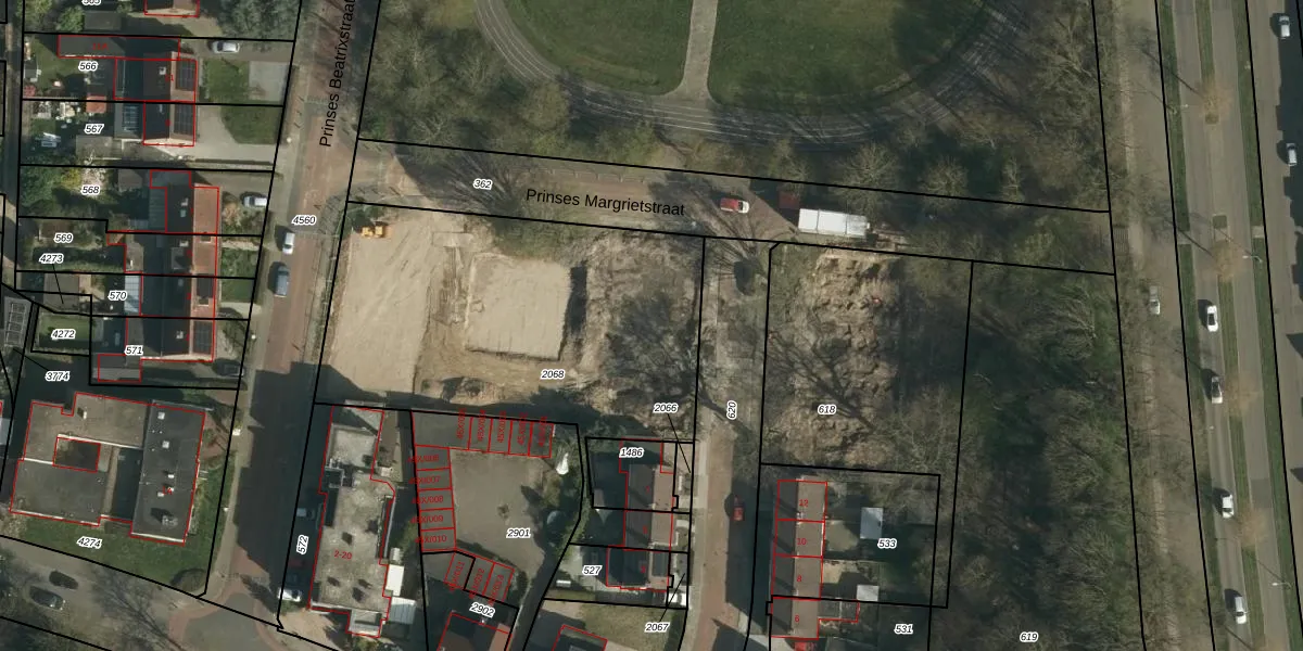 Het perceel waarop Prinses Irenestraat 13 staat heeft een oppervlakte van 1884 m². Dit is een zeer groot perceel. De perceeloppervlakte wordt geregistreerd door het Kadaster. Gedetailleerde informatie over de maten van dit perceel kunt u vinden in het rapport Kadastrale kaart met maatvoering van Prinses Irenestraat 13.