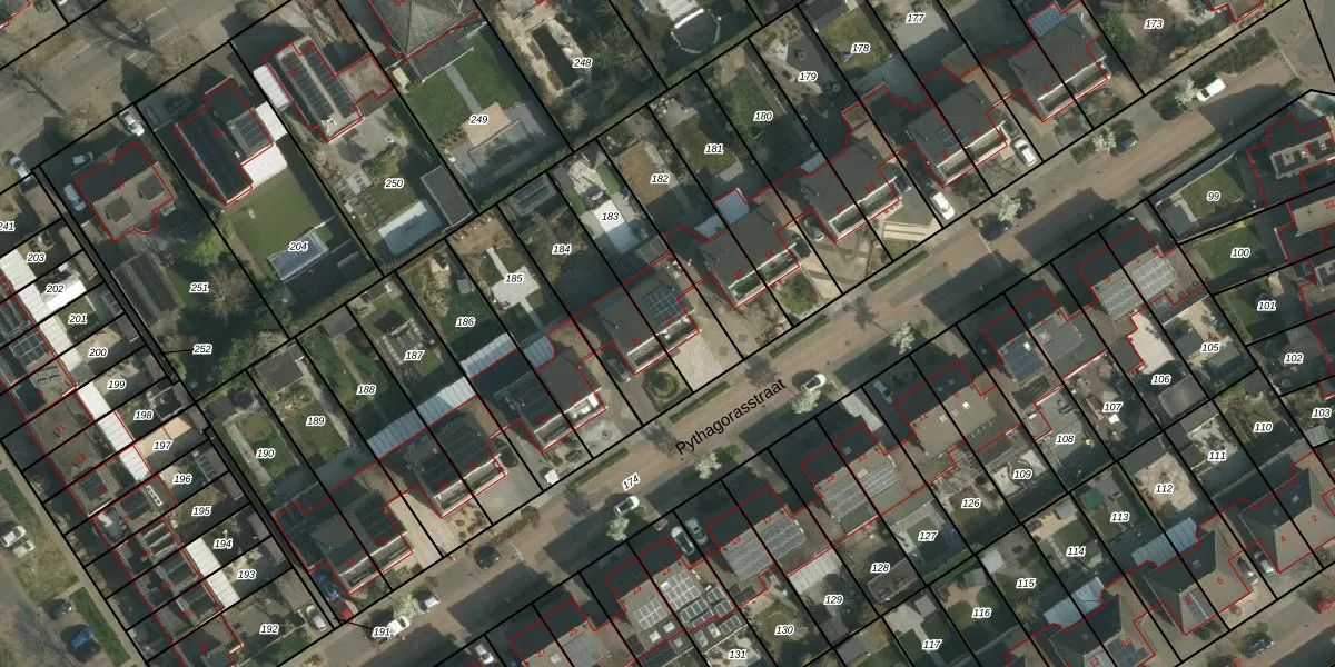 Het perceel waarop Pythagorasstraat 18 staat heeft een oppervlakte van 361 m². Dit is een groot perceel. De perceeloppervlakte wordt geregistreerd door het Kadaster. Gedetailleerde informatie over de maten van dit perceel kunt u vinden in het rapport Kadastrale kaart met maatvoering van Pythagorasstraat 18.