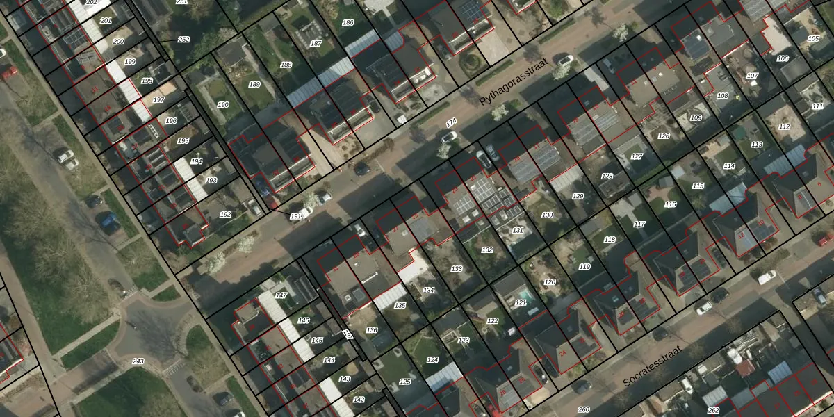 Het perceel waarop Pythagorasstraat 25 staat heeft een oppervlakte van 258 m². Dit is een middelgroot perceel. De perceeloppervlakte wordt geregistreerd door het Kadaster. Gedetailleerde informatie over de maten van dit perceel kunt u vinden in het rapport Kadastrale kaart met maatvoering van Pythagorasstraat 25.