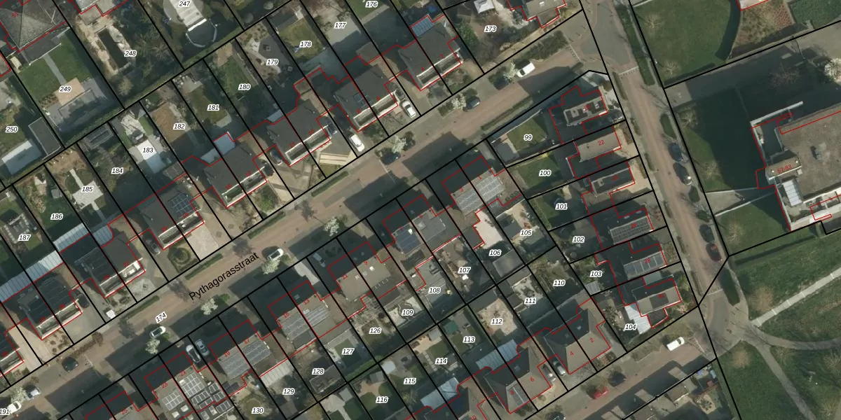 Het perceel waarop Pythagorasstraat 5 staat heeft een oppervlakte van 258 m². Dit is een middelgroot perceel. De perceeloppervlakte wordt geregistreerd door het Kadaster. Gedetailleerde informatie over de maten van dit perceel kunt u vinden in het rapport Kadastrale kaart met maatvoering van Pythagorasstraat 5.