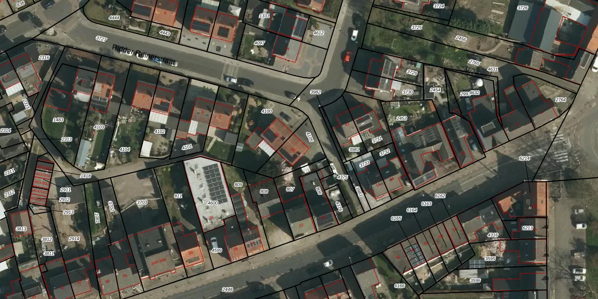 Gebruik de zoekbalk of klik op een perceel voor informatie over de adressen binnen dit perceel.
