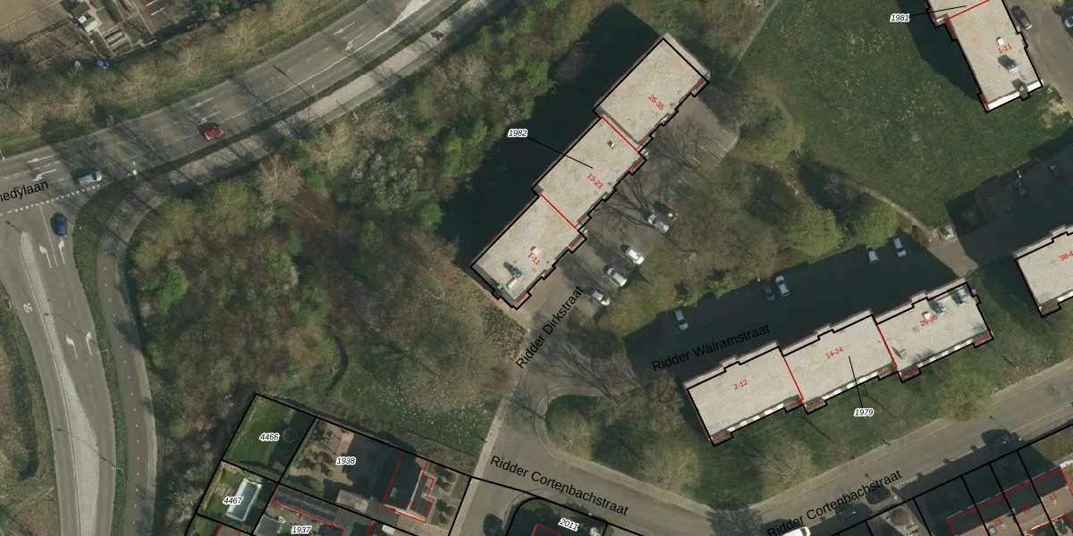 Ridder Dirkstraat 1 is gelegen op kadastraal perceel BSM02D1982. Deze kadastrale aanduiding is uniek en wordt gebruikt door het Kadaster om eigendomsrechten en andere zakelijke rechten vast te leggen. Het perceel maakt onderdeel uit van de kadastrale gemeente Brunssum.