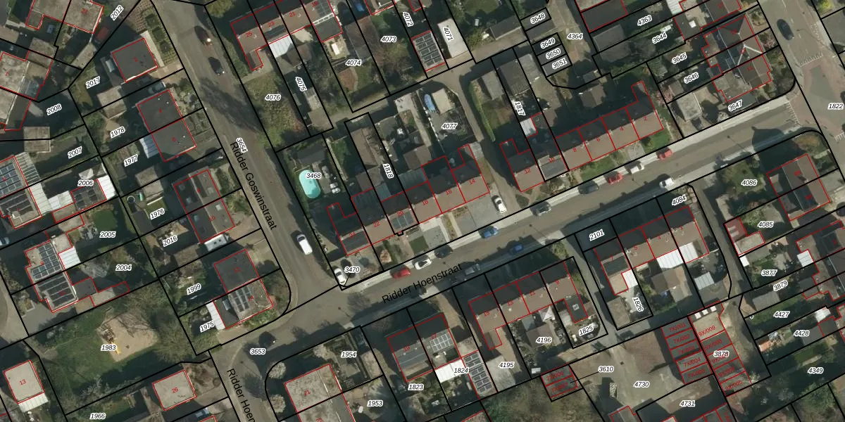 Het perceel waarop Ridder Hoenstraat 18 staat heeft een oppervlakte van 2332 m². Dit is een zeer groot perceel. De perceeloppervlakte wordt geregistreerd door het Kadaster. Gedetailleerde informatie over de maten van dit perceel kunt u vinden in het rapport Kadastrale kaart met maatvoering van Ridder Hoenstraat 18.