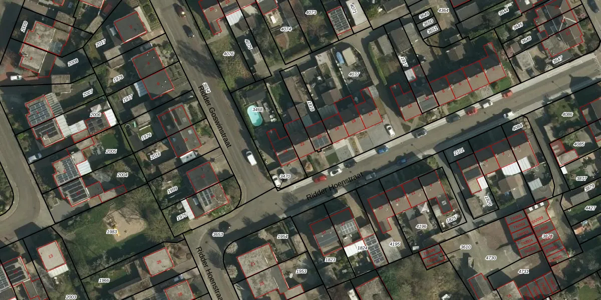 Het perceel waarop Ridder Hoenstraat 22 staat heeft een oppervlakte van 2332 m². Dit is een zeer groot perceel. De perceeloppervlakte wordt geregistreerd door het Kadaster. Gedetailleerde informatie over de maten van dit perceel kunt u vinden in het rapport Kadastrale kaart met maatvoering van Ridder Hoenstraat 22.