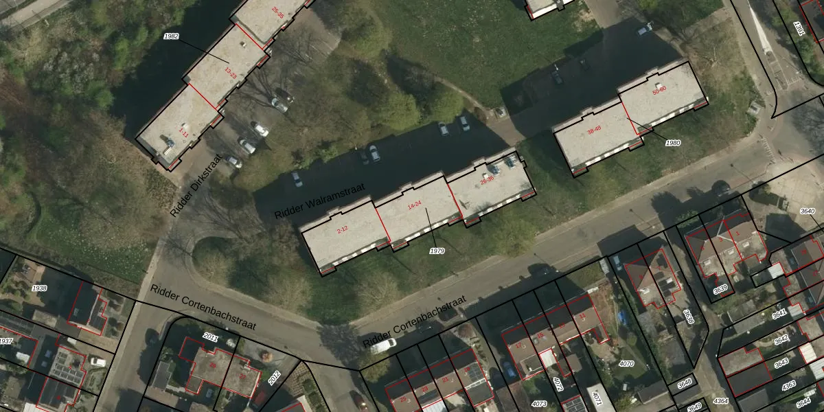 Het perceel waarop Ridder Walramstraat 24 staat heeft een oppervlakte van 628 m². Dit is een groot perceel. De perceeloppervlakte wordt geregistreerd door het Kadaster. Gedetailleerde informatie over de maten van dit perceel kunt u vinden in het rapport Kadastrale kaart met maatvoering van Ridder Walramstraat 24.