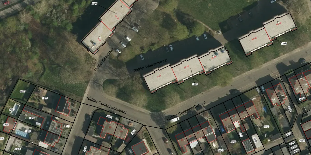 Het perceel waarop Ridder Walramstraat 8 staat heeft een oppervlakte van 628 m². Dit is een groot perceel. De perceeloppervlakte wordt geregistreerd door het Kadaster. Gedetailleerde informatie over de maten van dit perceel kunt u vinden in het rapport Kadastrale kaart met maatvoering van Ridder Walramstraat 8.