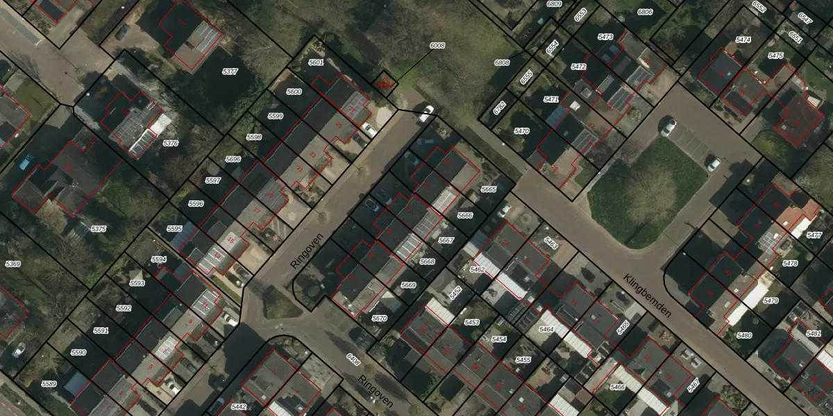 Het perceel waarop Ringoven 40 staat heeft een oppervlakte van 182 m². Dit is een middelgroot perceel. De perceeloppervlakte wordt geregistreerd door het Kadaster. Gedetailleerde informatie over de maten van dit perceel kunt u vinden in het rapport Kadastrale kaart met maatvoering van Ringoven 40.