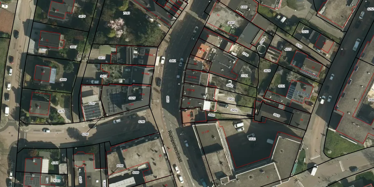 Rumpenerstraat 63-B is gelegen op kadastraal perceel BSM02B3453. Deze kadastrale aanduiding is uniek en wordt gebruikt door het Kadaster om eigendomsrechten en andere zakelijke rechten vast te leggen. Het perceel maakt onderdeel uit van de kadastrale gemeente Brunssum.