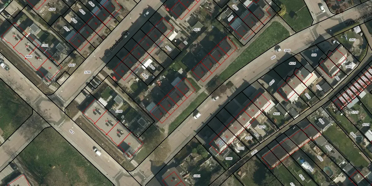 Het perceel waarop Schepenstraat 16 staat heeft een oppervlakte van 4308 m². Dit is een zeer groot perceel. De perceeloppervlakte wordt geregistreerd door het Kadaster. Gedetailleerde informatie over de maten van dit perceel kunt u vinden in het rapport Kadastrale kaart met maatvoering van Schepenstraat 16.
