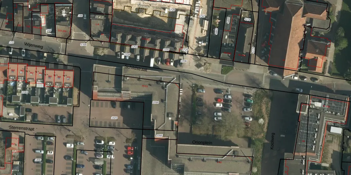 Het perceel waarop Schildstraat 45 staat heeft een oppervlakte van 985 m². Dit is een groot perceel. De perceeloppervlakte wordt geregistreerd door het Kadaster. Gedetailleerde informatie over de maten van dit perceel kunt u vinden in het rapport Kadastrale kaart met maatvoering van Schildstraat 45.