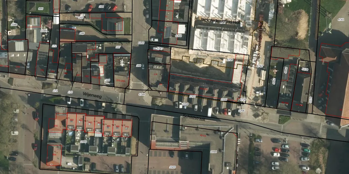 Het perceel waarop Schildstraat 62-G staat heeft een oppervlakte van 905 m². Dit is een groot perceel. De perceeloppervlakte wordt geregistreerd door het Kadaster. Gedetailleerde informatie over de maten van dit perceel kunt u vinden in het rapport Kadastrale kaart met maatvoering van Schildstraat 62-G.