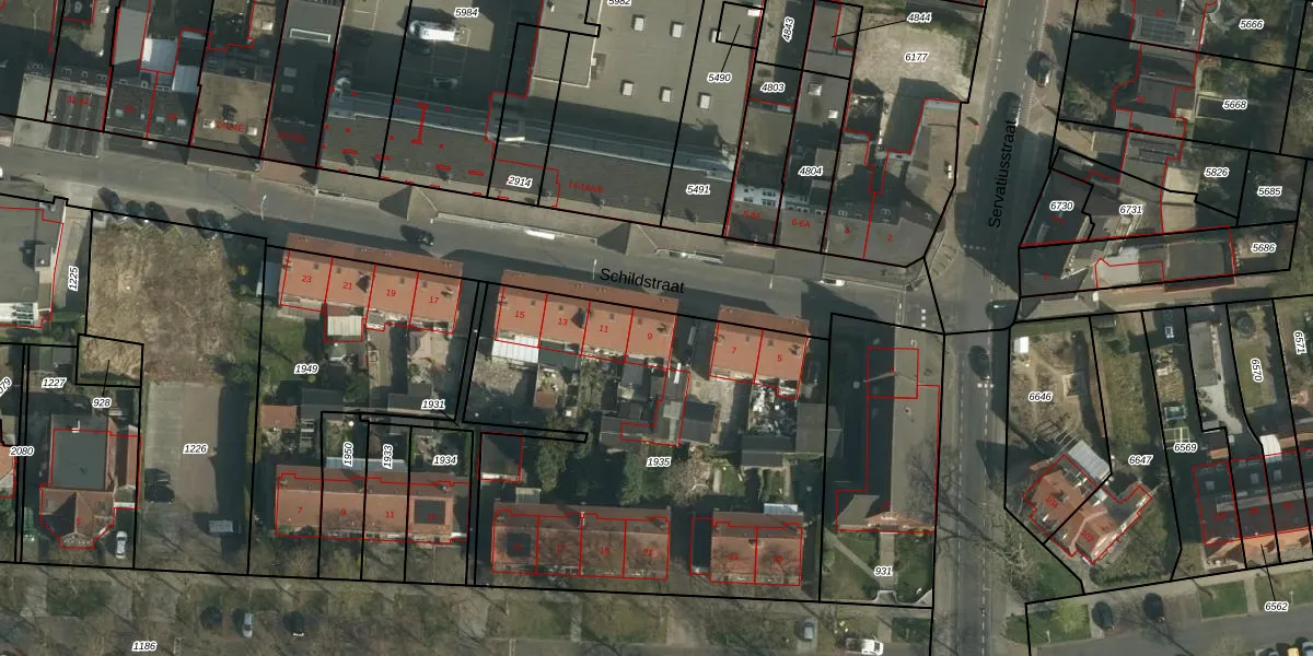 Schildstraat 9 is gelegen op kadastraal perceel BSM02G1935. Deze kadastrale aanduiding is uniek en wordt gebruikt door het Kadaster om eigendomsrechten en andere zakelijke rechten vast te leggen. Het perceel maakt onderdeel uit van de kadastrale gemeente Brunssum.