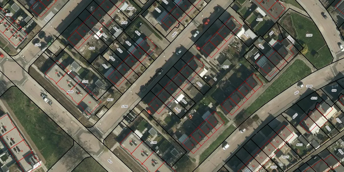 Het perceel waarop Schoutstraat 15 staat heeft een oppervlakte van 159 m². Dit is een middelgroot perceel. De perceeloppervlakte wordt geregistreerd door het Kadaster. Gedetailleerde informatie over de maten van dit perceel kunt u vinden in het rapport Kadastrale kaart met maatvoering van Schoutstraat 15.