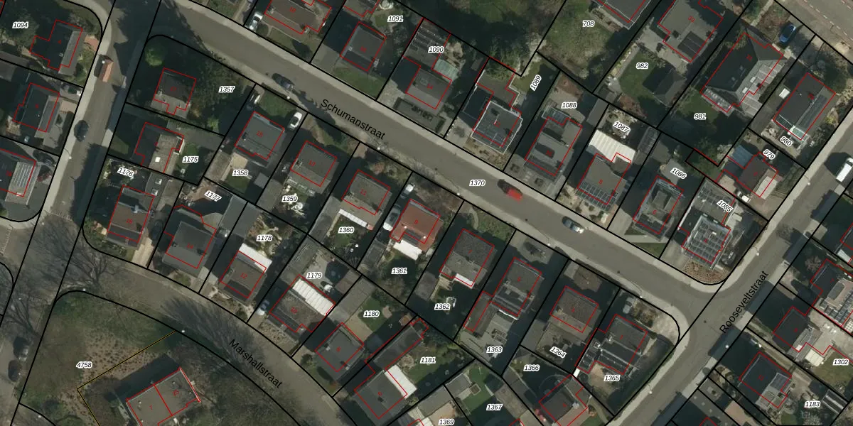 Het perceel waarop Schumanstraat 9 staat heeft een oppervlakte van 390 m². Dit is een groot perceel. De perceeloppervlakte wordt geregistreerd door het Kadaster. Gedetailleerde informatie over de maten van dit perceel kunt u vinden in het rapport Kadastrale kaart met maatvoering van Schumanstraat 9.