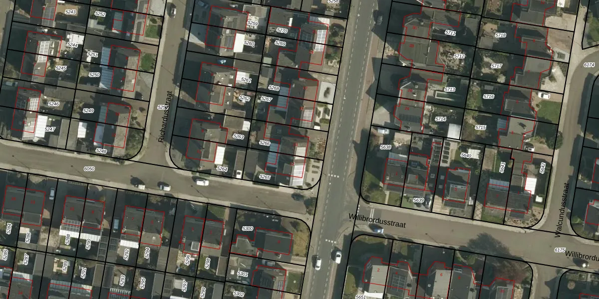 Gebruik de zoekbalk of klik op een perceel voor informatie over de adressen binnen dit perceel.