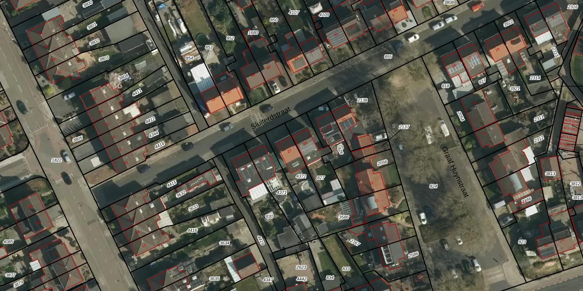 Het perceel waarop Sluiterdstraat 27 staat heeft een oppervlakte van 240 m². Dit is een middelgroot perceel. De perceeloppervlakte wordt geregistreerd door het Kadaster. Gedetailleerde informatie over de maten van dit perceel kunt u vinden in het rapport Kadastrale kaart met maatvoering van Sluiterdstraat 27.