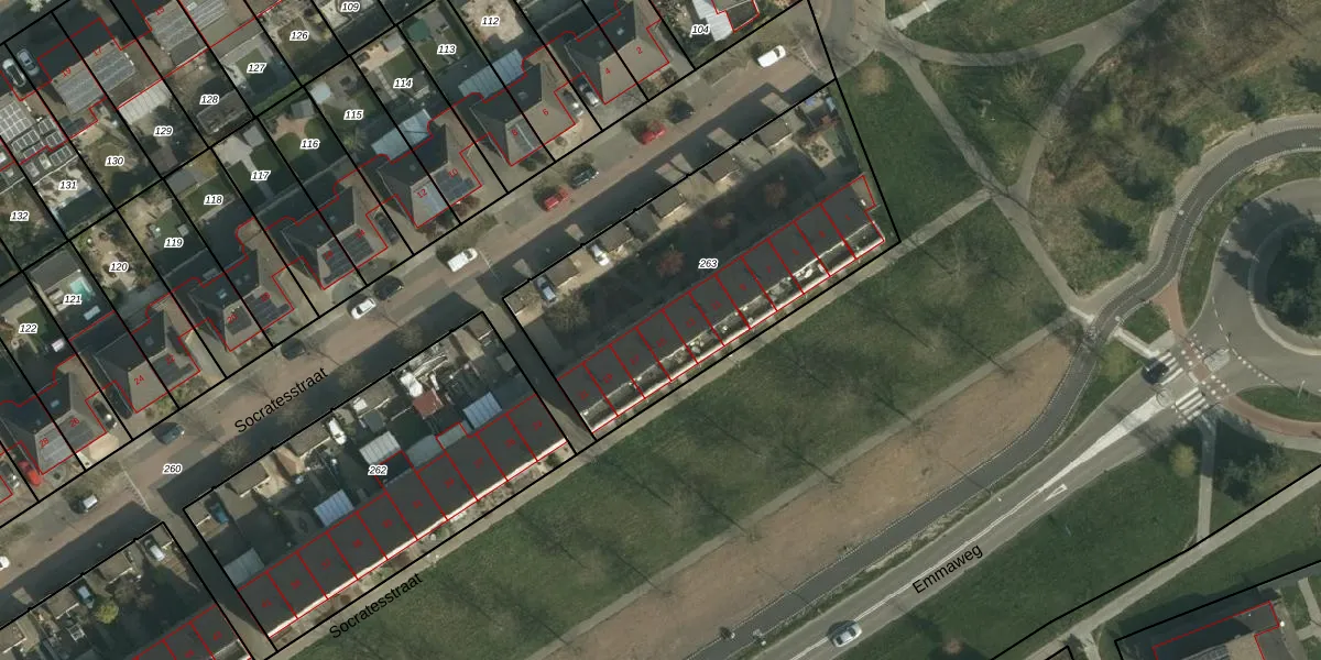 Het perceel waarop Socratesstraat 15 staat heeft een oppervlakte van 1500 m². Dit is een zeer groot perceel. De perceeloppervlakte wordt geregistreerd door het Kadaster. Gedetailleerde informatie over de maten van dit perceel kunt u vinden in het rapport Kadastrale kaart met maatvoering van Socratesstraat 15.