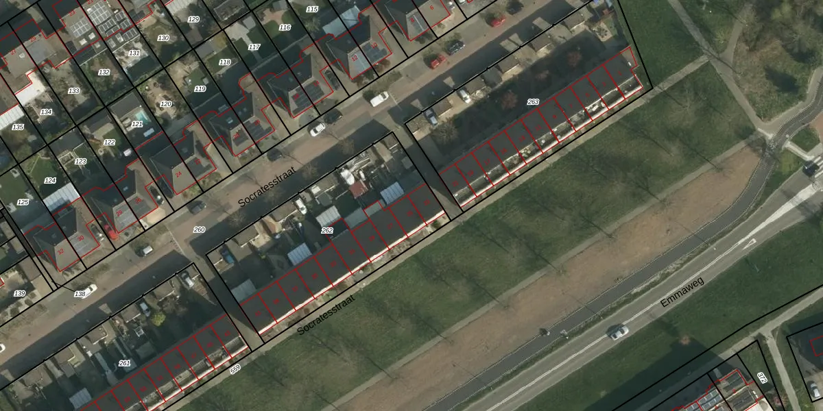 Het perceel waarop Socratesstraat 25 staat heeft een oppervlakte van 1411 m². Dit is een zeer groot perceel. De perceeloppervlakte wordt geregistreerd door het Kadaster. Gedetailleerde informatie over de maten van dit perceel kunt u vinden in het rapport Kadastrale kaart met maatvoering van Socratesstraat 25.