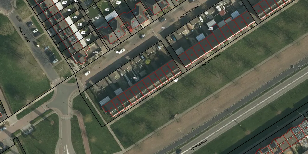 Het perceel waarop Socratesstraat 49 staat heeft een oppervlakte van 1628 m². Dit is een zeer groot perceel. De perceeloppervlakte wordt geregistreerd door het Kadaster. Gedetailleerde informatie over de maten van dit perceel kunt u vinden in het rapport Kadastrale kaart met maatvoering van Socratesstraat 49.