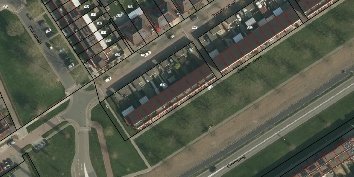 Het perceel waarop Socratesstraat 51 staat heeft een oppervlakte van 1628 m². Dit is een zeer groot perceel. De perceeloppervlakte wordt geregistreerd door het Kadaster. Gedetailleerde informatie over de maten van dit perceel kunt u vinden in het rapport Kadastrale kaart met maatvoering van Socratesstraat 51.
