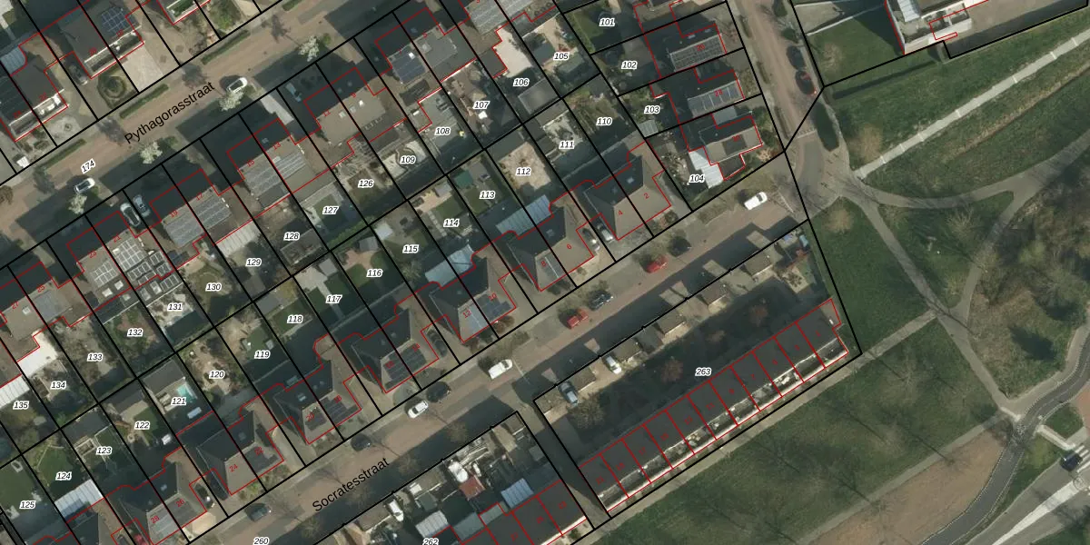Het perceel waarop Socratesstraat 8 staat heeft een oppervlakte van 260 m². Dit is een middelgroot perceel. De perceeloppervlakte wordt geregistreerd door het Kadaster. Gedetailleerde informatie over de maten van dit perceel kunt u vinden in het rapport Kadastrale kaart met maatvoering van Socratesstraat 8.