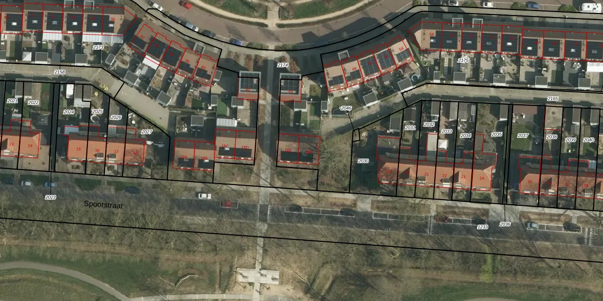 Het perceel waarop Spoorstraat 18-F staat heeft een oppervlakte van 4007 m². Dit is een zeer groot perceel. De perceeloppervlakte wordt geregistreerd door het Kadaster. Gedetailleerde informatie over de maten van dit perceel kunt u vinden in het rapport Kadastrale kaart met maatvoering van Spoorstraat 18-F.
