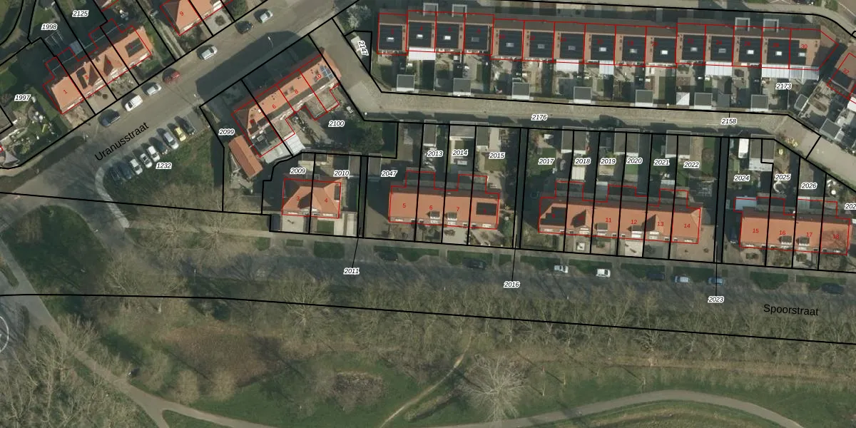 Het perceel waarop Spoorstraat 6 staat heeft een oppervlakte van 174 m². Dit is een middelgroot perceel. De perceeloppervlakte wordt geregistreerd door het Kadaster. Gedetailleerde informatie over de maten van dit perceel kunt u vinden in het rapport Kadastrale kaart met maatvoering van Spoorstraat 6.