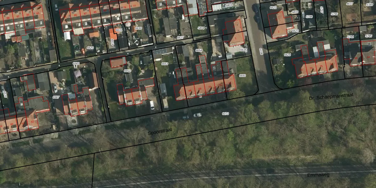 Het perceel waarop Spoorstraat 68 staat heeft een oppervlakte van 994 m². Dit is een groot perceel. De perceeloppervlakte wordt geregistreerd door het Kadaster. Gedetailleerde informatie over de maten van dit perceel kunt u vinden in het rapport Kadastrale kaart met maatvoering van Spoorstraat 68.