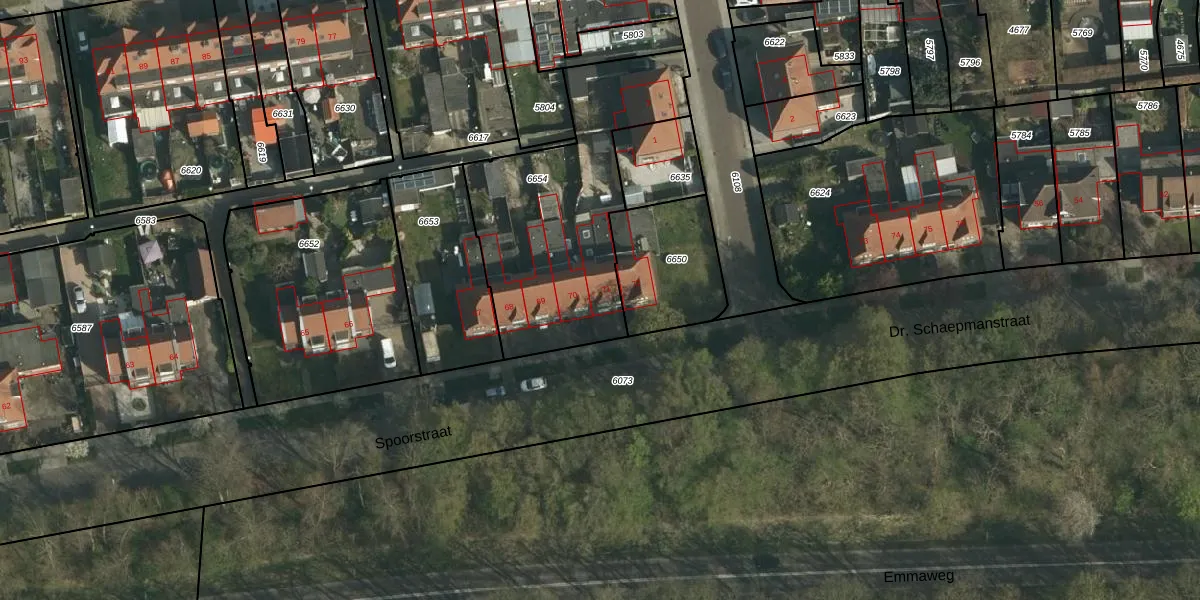 Het perceel waarop Spoorstraat 71 staat heeft een oppervlakte van 994 m². Dit is een groot perceel. De perceeloppervlakte wordt geregistreerd door het Kadaster. Gedetailleerde informatie over de maten van dit perceel kunt u vinden in het rapport Kadastrale kaart met maatvoering van Spoorstraat 71.