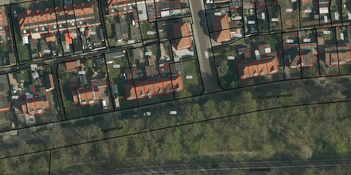 Het perceel waarop Spoorstraat 72 staat heeft een oppervlakte van 351 m². Dit is een groot perceel. De perceeloppervlakte wordt geregistreerd door het Kadaster. Gedetailleerde informatie over de maten van dit perceel kunt u vinden in het rapport Kadastrale kaart met maatvoering van Spoorstraat 72.