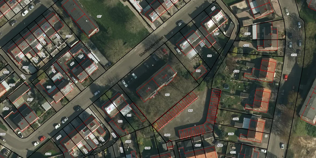 Het perceel waarop Stadhouderstraat 15 staat heeft een oppervlakte van 1362 m². Dit is een zeer groot perceel. De perceeloppervlakte wordt geregistreerd door het Kadaster. Gedetailleerde informatie over de maten van dit perceel kunt u vinden in het rapport Kadastrale kaart met maatvoering van Stadhouderstraat 15.