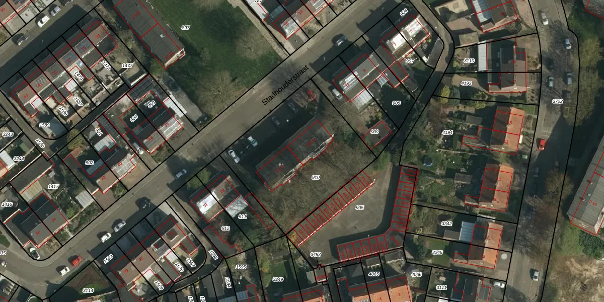 Stadhouderstraat 19 is gelegen op kadastraal perceel BSM02D910. Deze kadastrale aanduiding is uniek en wordt gebruikt door het Kadaster om eigendomsrechten en andere zakelijke rechten vast te leggen. Het perceel maakt onderdeel uit van de kadastrale gemeente Brunssum.