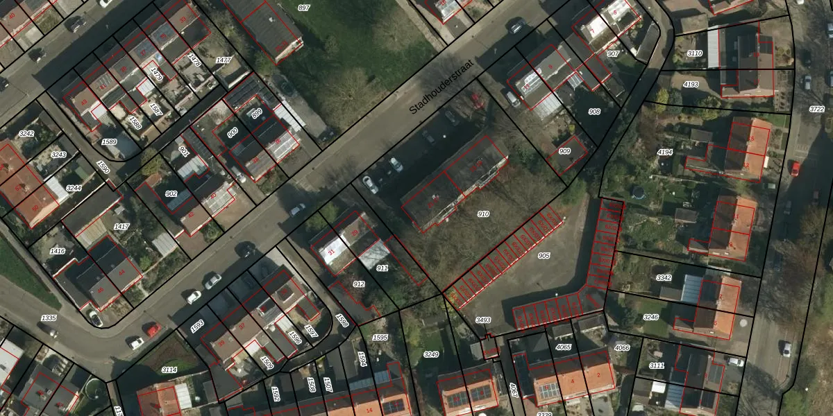 Het perceel waarop Stadhouderstraat 23 staat heeft een oppervlakte van 1362 m². Dit is een zeer groot perceel. De perceeloppervlakte wordt geregistreerd door het Kadaster. Gedetailleerde informatie over de maten van dit perceel kunt u vinden in het rapport Kadastrale kaart met maatvoering van Stadhouderstraat 23.