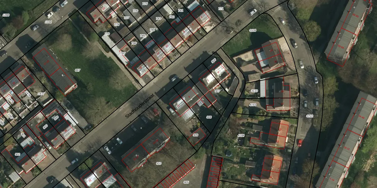 Stadhouderstraat 9 is gelegen op kadastraal perceel BSM02D908. Deze kadastrale aanduiding is uniek en wordt gebruikt door het Kadaster om eigendomsrechten en andere zakelijke rechten vast te leggen. Het perceel maakt onderdeel uit van de kadastrale gemeente Brunssum.