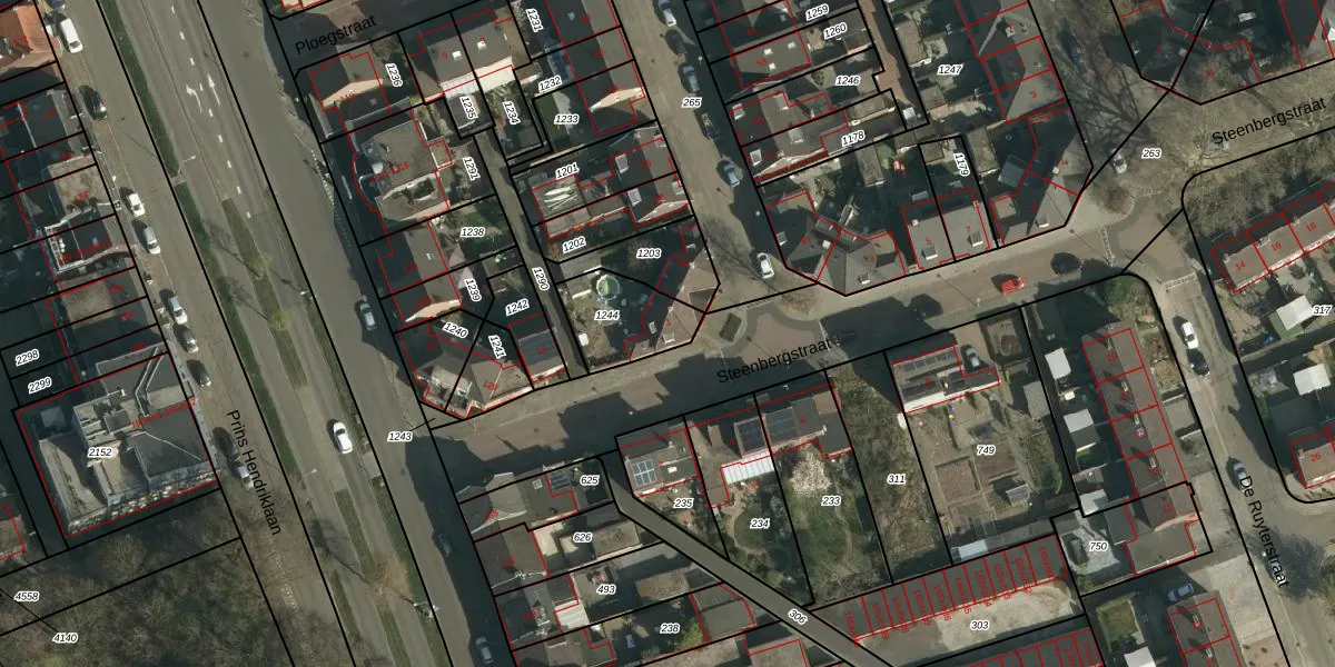 Het perceel waarop Steenbergstraat 1 staat heeft een oppervlakte van 218 m². Dit is een middelgroot perceel. De perceeloppervlakte wordt geregistreerd door het Kadaster. Gedetailleerde informatie over de maten van dit perceel kunt u vinden in het rapport Kadastrale kaart met maatvoering van Steenbergstraat 1.