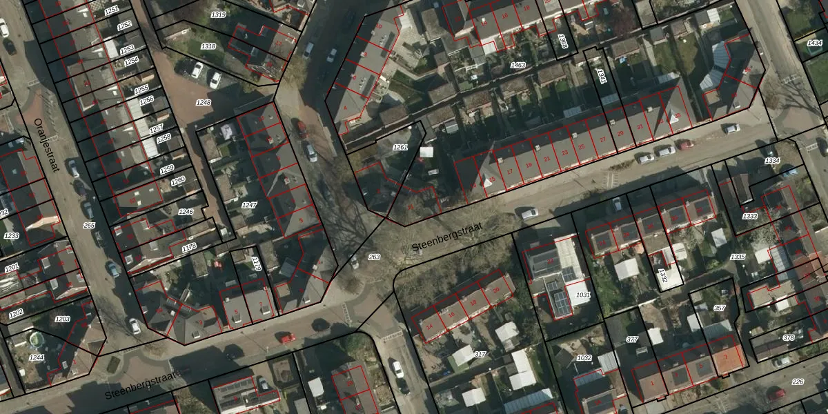 Het perceel waarop Steenbergstraat 11 staat heeft een oppervlakte van 3844 m². Dit is een zeer groot perceel. De perceeloppervlakte wordt geregistreerd door het Kadaster. Gedetailleerde informatie over de maten van dit perceel kunt u vinden in het rapport Kadastrale kaart met maatvoering van Steenbergstraat 11.