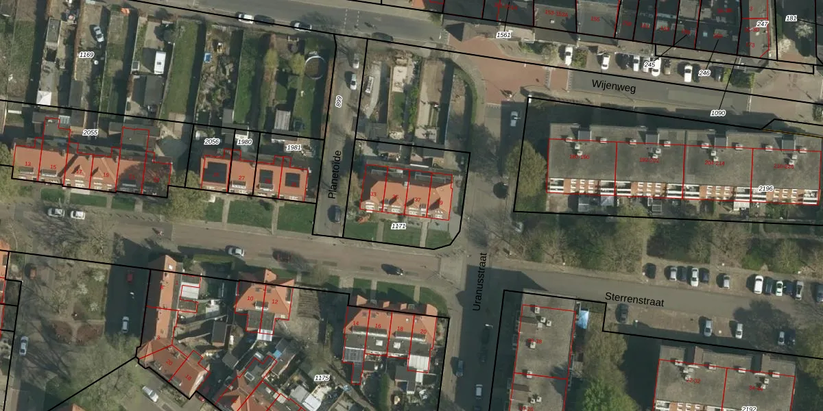 Het perceel waarop Sterrenstraat 37 staat heeft een oppervlakte van 665 m². Dit is een groot perceel. De perceeloppervlakte wordt geregistreerd door het Kadaster. Gedetailleerde informatie over de maten van dit perceel kunt u vinden in het rapport Kadastrale kaart met maatvoering van Sterrenstraat 37.
