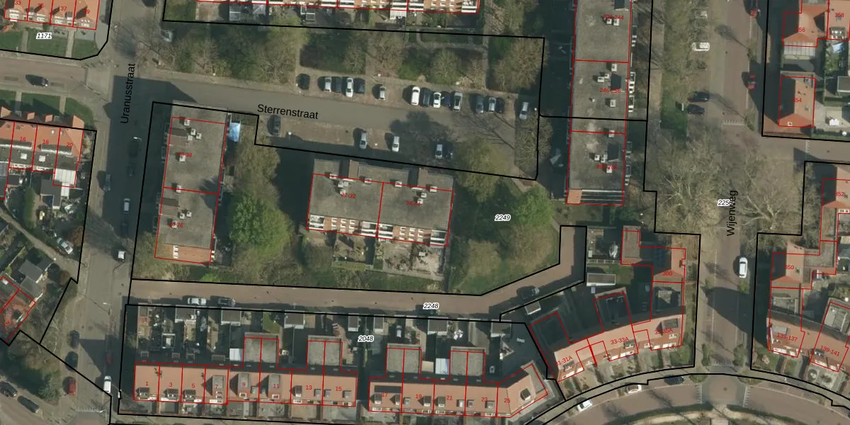 Het perceel waarop Sterrenstraat 38 staat heeft een oppervlakte van 4984 m². Dit is een zeer groot perceel. De perceeloppervlakte wordt geregistreerd door het Kadaster. Gedetailleerde informatie over de maten van dit perceel kunt u vinden in het rapport Kadastrale kaart met maatvoering van Sterrenstraat 38.