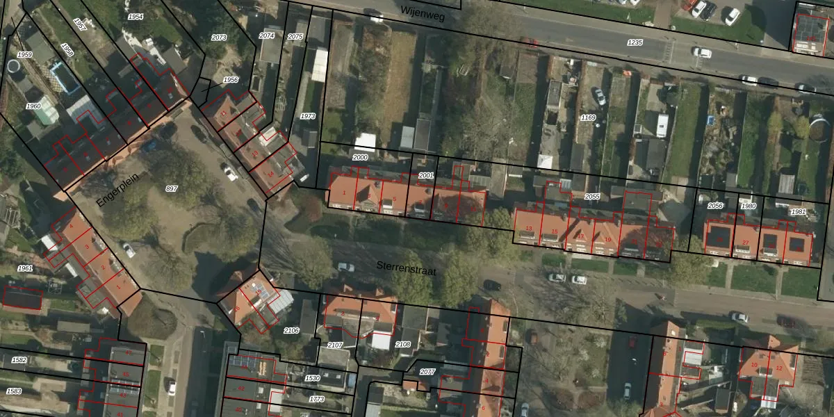 Gebruik de zoekbalk of klik op een perceel voor informatie over de adressen binnen dit perceel.