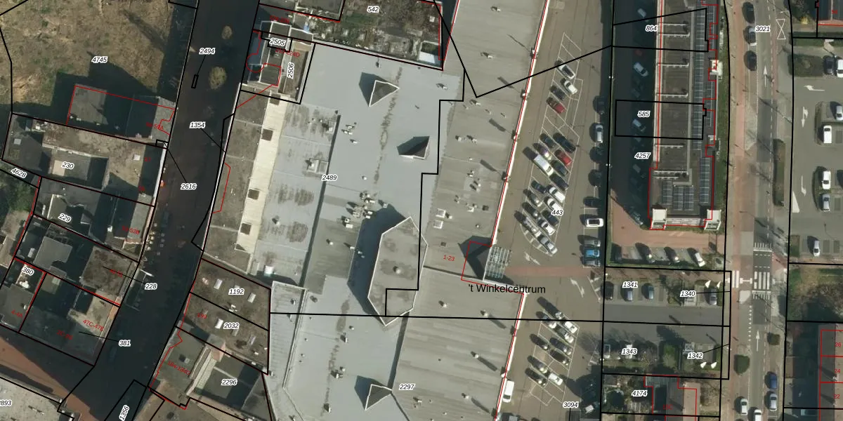 Het perceel waarop 't Winkelcentrum 9 staat heeft een oppervlakte van 2528 m². Dit is een zeer groot perceel. De perceeloppervlakte wordt geregistreerd door het Kadaster. Gedetailleerde informatie over de maten van dit perceel kunt u vinden in het rapport Kadastrale kaart met maatvoering van 't Winkelcentrum 9.